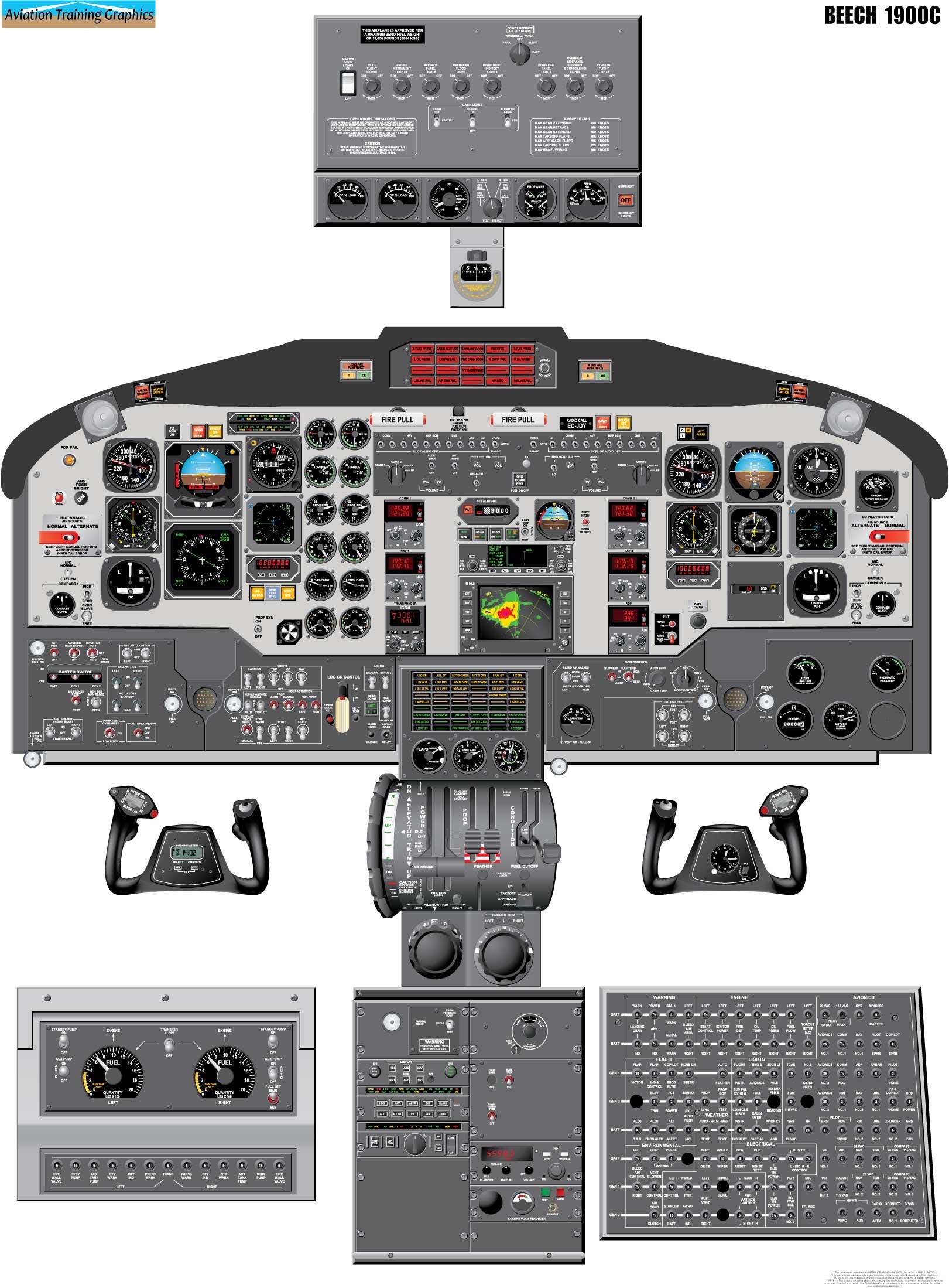 Beechcraft 1900C Aircraft Cockpit Training Poster - Flight Schools, Pilots, Enthusiasts
