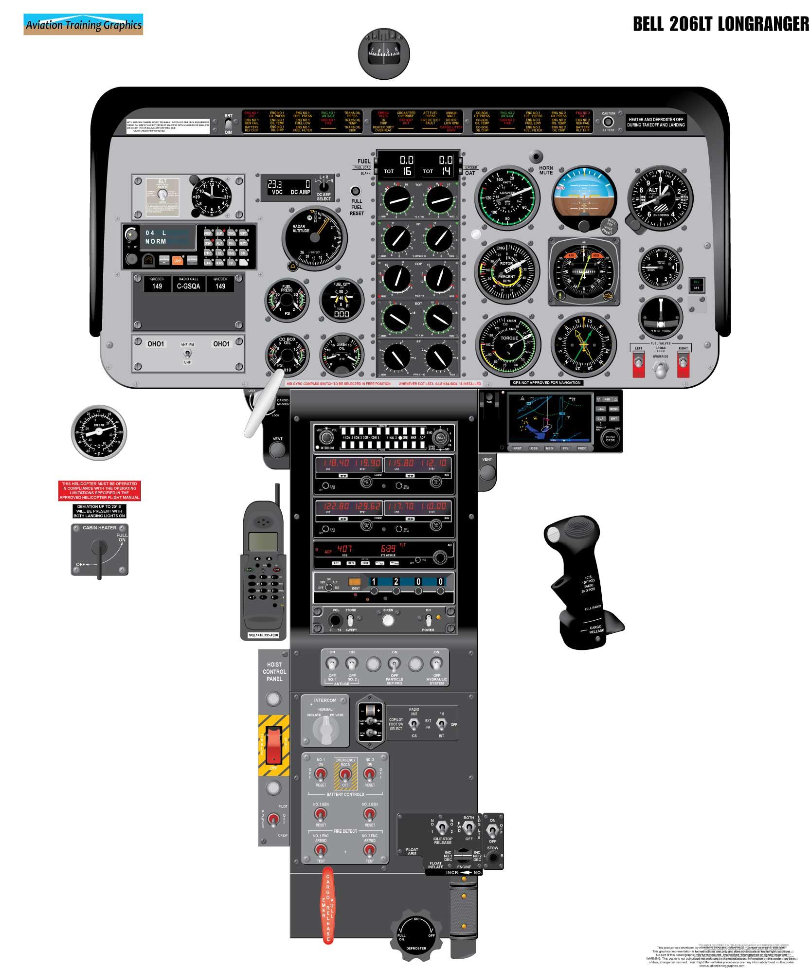 Bell 206LT Longranger Helicopter Cockpit Training Poster - Flight Schools, Pilots, Enthusiasts