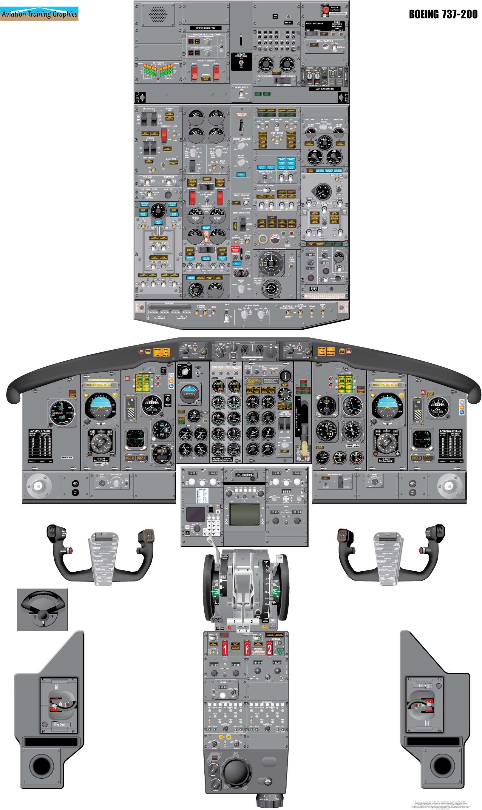 Boeing 737-200 Aircraft Cockpit Training Poster - Flight Schools, Pilots, Enthusiasts