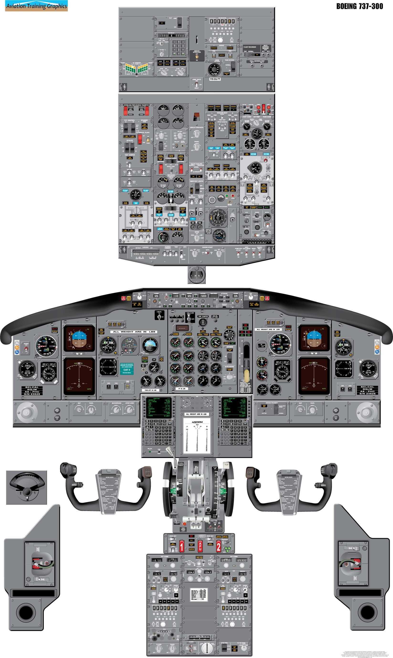 Boeing 737-300 Aircraft Cockpit Training Poster - Flight Schools, Pilots, Enthusiasts