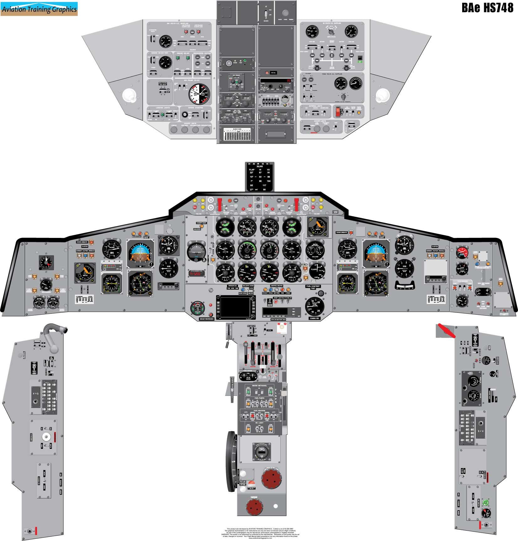 British Aerospace BAE HS-748 Aircraft Cockpit Training Poster - Flight Schools, Pilots, Enthusiasts