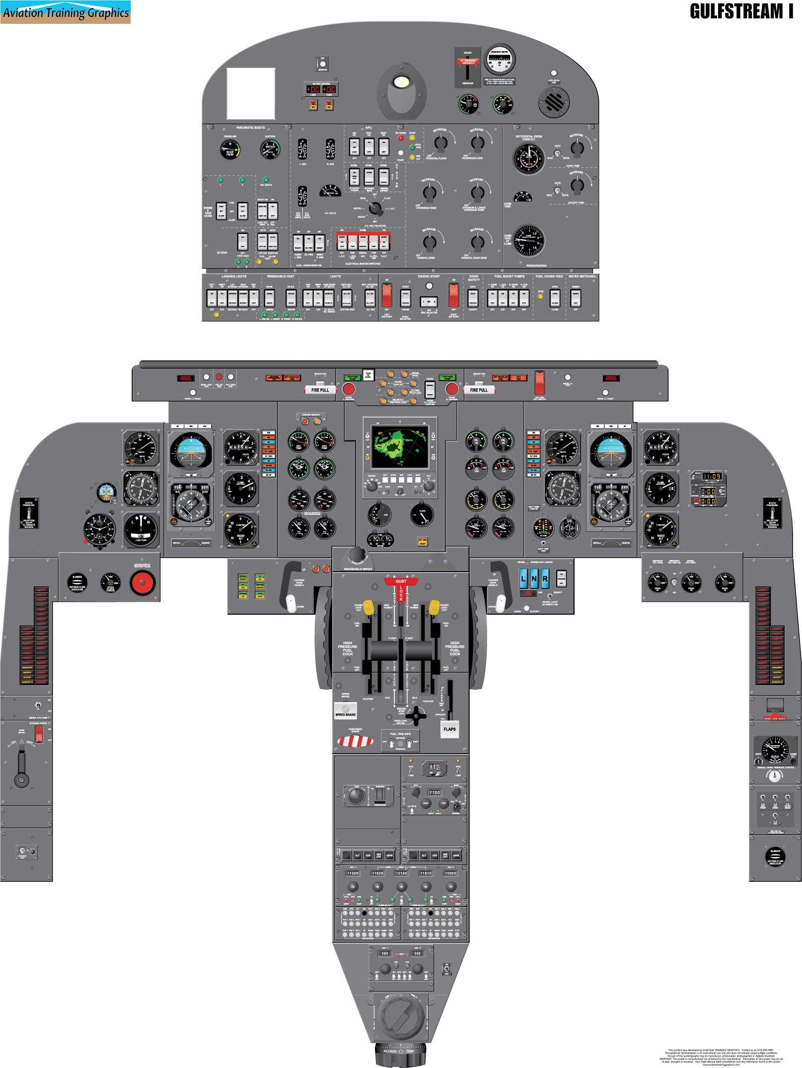 Gulfstream G-I Aircraft Cockpit Training Poster - Flight Schools, Pilots, Enthusiasts