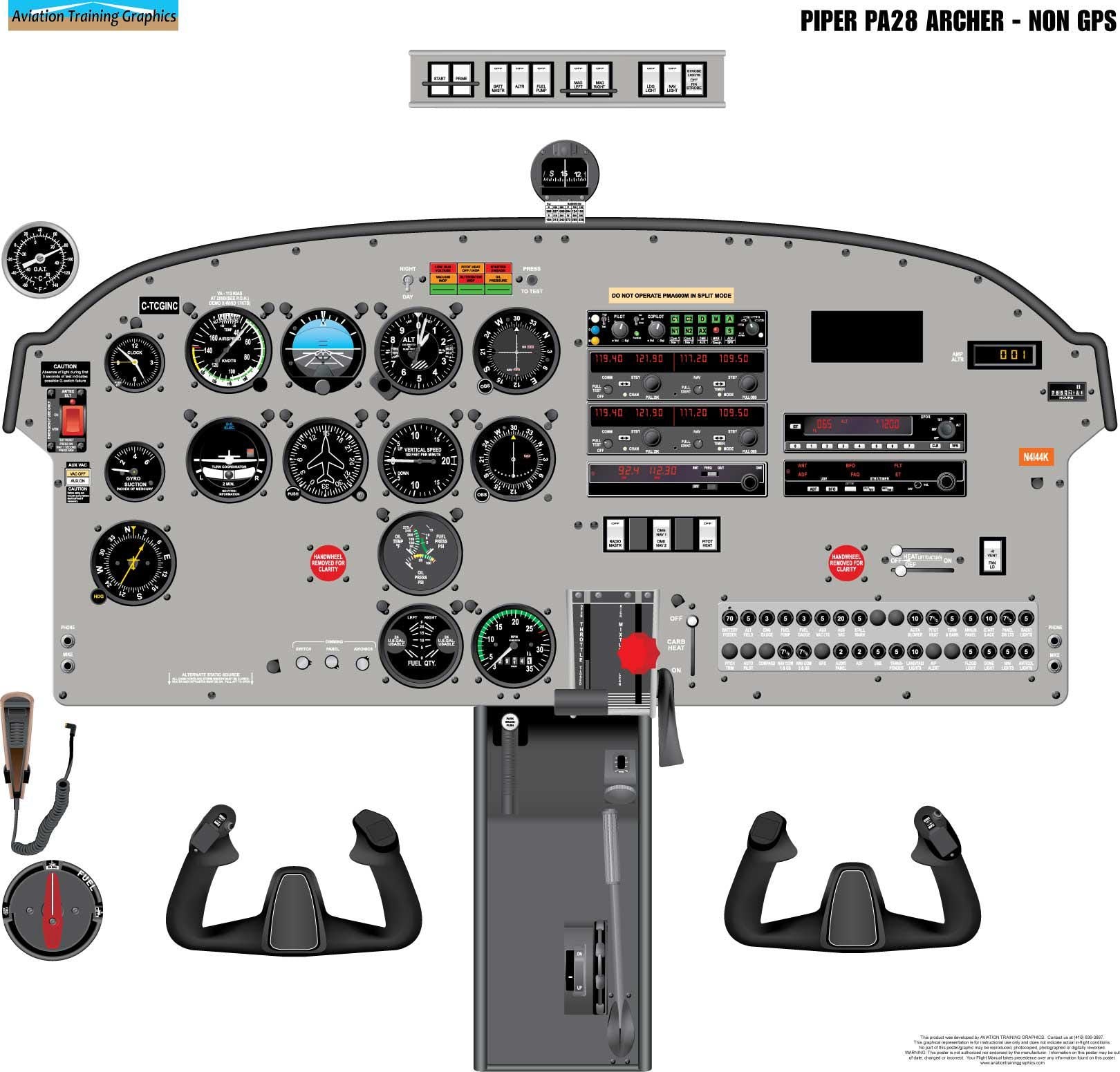 Piper PA28 Archer Non-GPS Aircraft Cockpit Training Poster - Flight Schools, Pilots, Enthusiasts