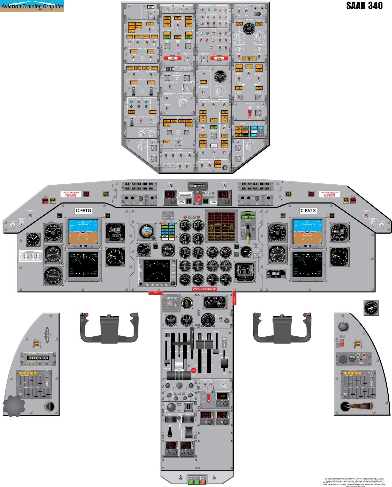 SAAB 340 Aircraft Cockpit Training Poster - Flight Schools, Pilots, Enthusiasts